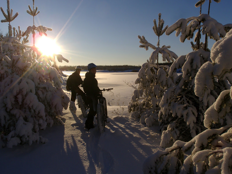 Ei yritetty poliisikalliolle vaan kierrettiin sinne takakautta. Talmolla käytiin ajamassa Sinisentalon polku vastapäivään. Oksa hyökkäsi siellä Janin kimppuun ja repi rotsin riekaleiksi  Sad  Bäcksintien yli ja lammelle jossa valotettiin filmiä tai jotain kun oli niin upea maisema. Liukasteltiin Timpan rantabulevardi, routa oli vissiin nostanut kallioita, niistä oli tullut niin jyrkkiä ettei mistään päästy ylös. Hallin kiertoliittymässä oltiin hiukan yli 12. Kyllä oli mahtava keli ja seura. Sunnuntaina uudestaan, oli puhetta kymmenestä mutta pitänee siirtää lähtöä kahdella tunnilla eteenpäin.